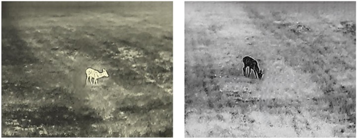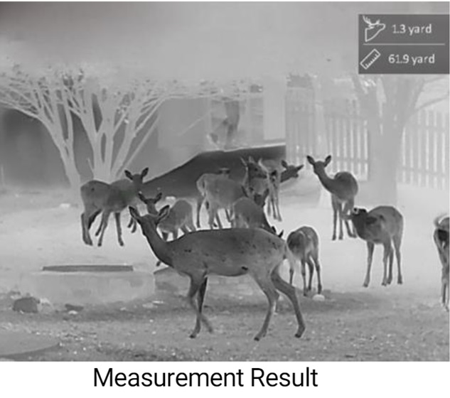 Функция цифрового определения расстояния до объекта работает на основе заранее предустановленных размеров. При обнаружении животного необходимо выбрать его тип из предложенного списка и задать верхние и нижние границы. Информация о вычисленном расстоянии будет отображена поле зрения.