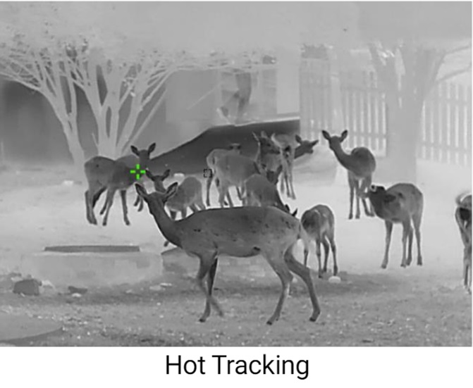 В режиме «Hot Tracking», самая теплая зона на термографическом изображении выделяется специальным цветным знаком. Эта функция становится неоценимой при мониторинге движущихся целей, особенно когда условия видимости оставляют желать лучшего.