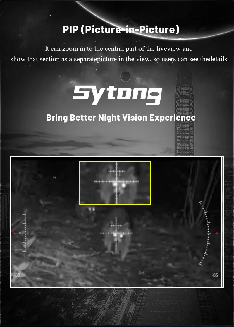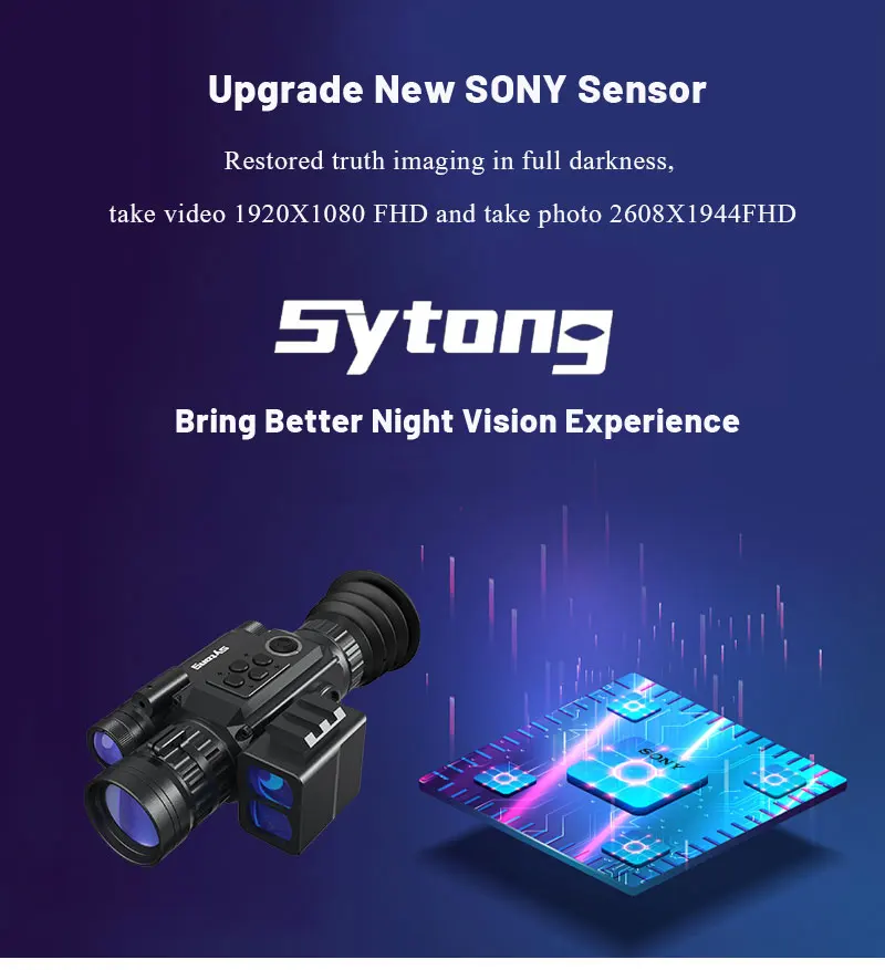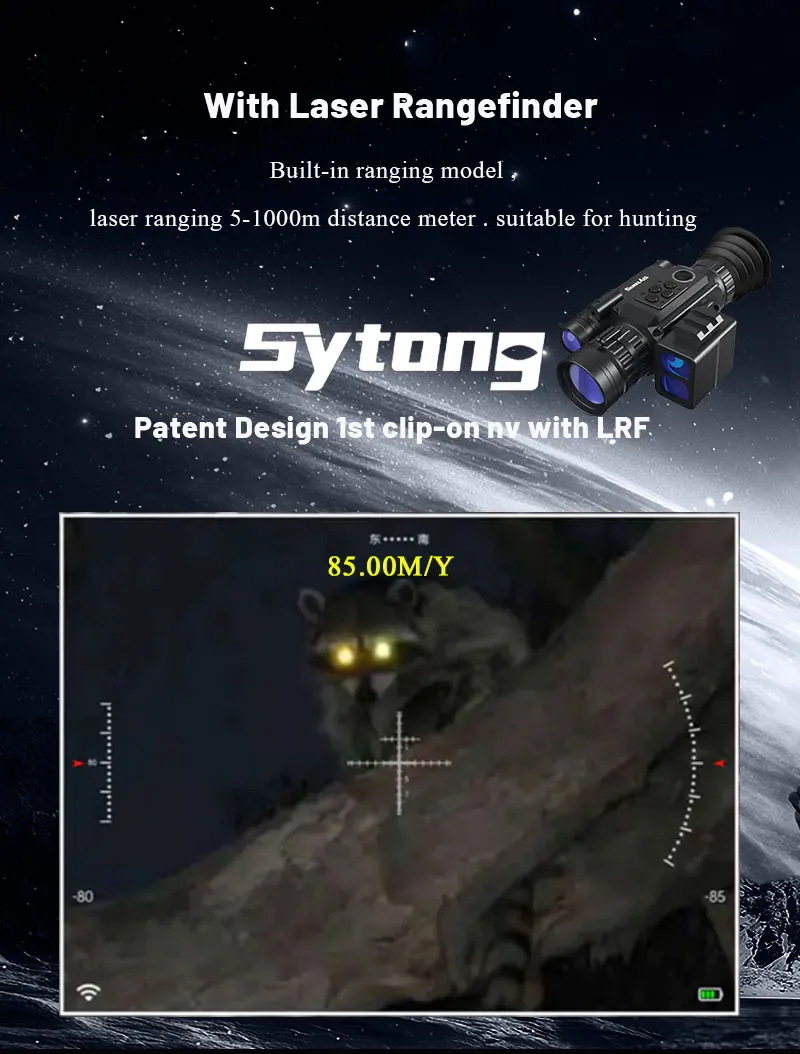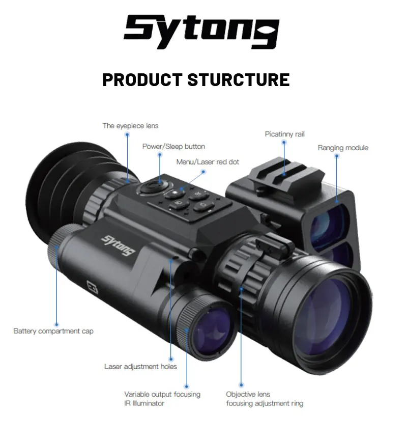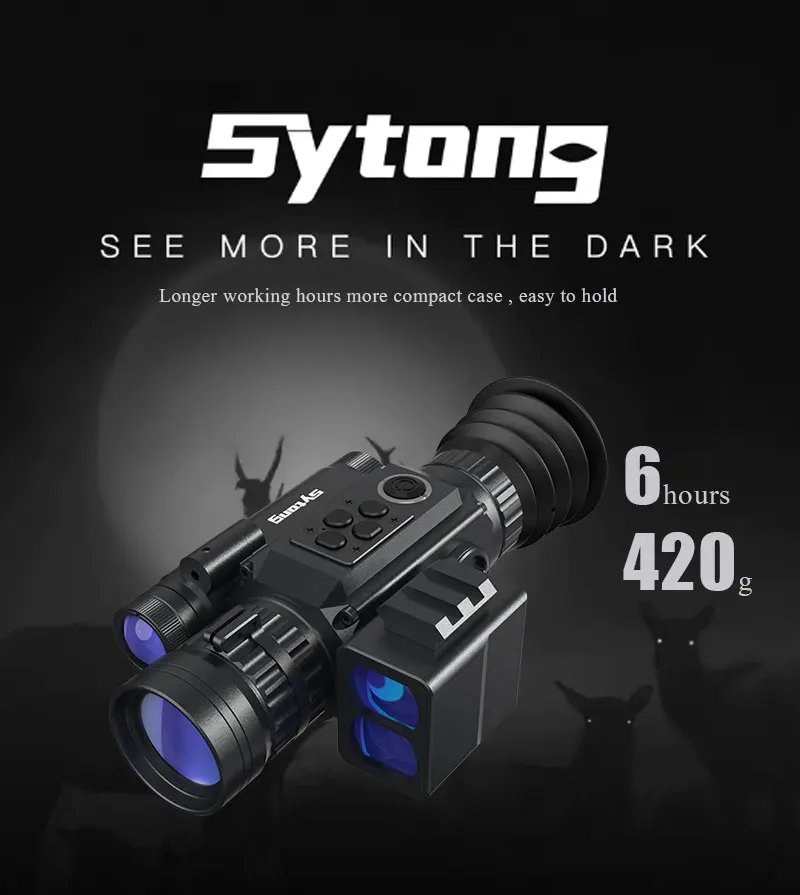 Лазерний далекомір Sytong HT-60 6,5x-13x Цифровий прилад нічного бачення є цифровою оптикою нічного бачення з вбудованим лазерним далекоміром, що пропонує повнокольоровий прилад для денної стрільби і плавно перемикається в потужний прилад нічного бачення при натисканні кнопок.