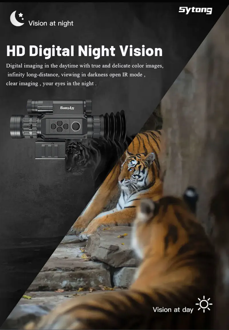 Sytong HT-60LRF пропонує повнокольоровий прилад для денної зйомки та плавно перемикається у потужний прилад нічного бачення одним натисканням кнопки.