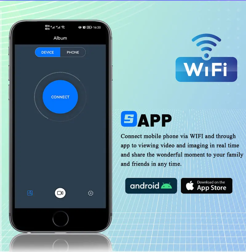 Вбудований WiFi дозволяє передавати мультимедіа та безпосередньо обмінюватися зображеннями в режимі реального часу.